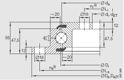 Single-row Four Point Contact Ball Slewing Bearing with flange (Non- gear teeth type)